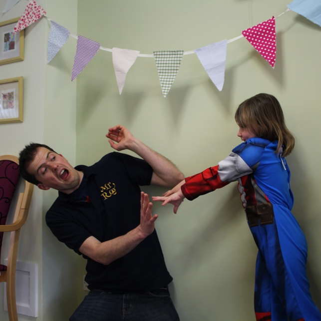 Mr Roo is DBS checked, and has more than 9 years’ experience in working with children. During that time he has honed his skills to focus on the 4-8 year old age range. He knows how children think and adapts in the moment to create unique, organically developing stories. His knowledge of child development and playwork means he can encourage and develop children’s creative imagination, all while they’re having amazing fun!